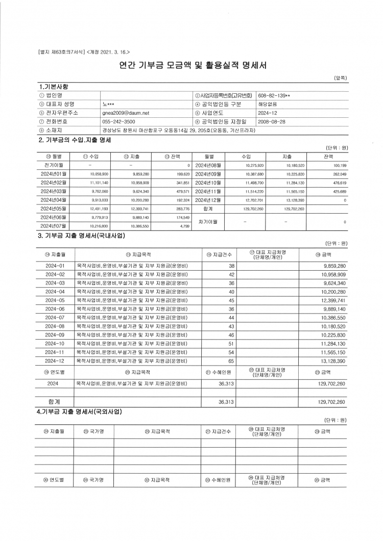 2024년 수입지출 결산 / 연간 기부금 모금액 및 활용실적 명세서 관리자 메일보내기 아이디로 검색 0 2,245 2025.04.03 11:56 짧은주소 - 짧은주소: http://gnea.kr/bbs/?t=Np 주소복사 × 짧은 글주소 복사 Note! 위 주소를 드래그, 복사(Ctrl+C)하여 사용하세요. 이전글다음글 목록 본문 댓글목록 등록된 댓글이 없습니다.